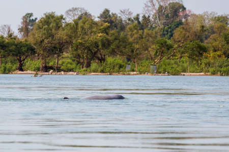珍しいエーヤワディー川イルカは南ラオスのドン コーンパペン島 Khongyai ビーチからボートツアーします 夏の間に東南アジアのメコン川上 4 つの何千もの島のボートから撮影した風景です の写真素材 画像素材 Image